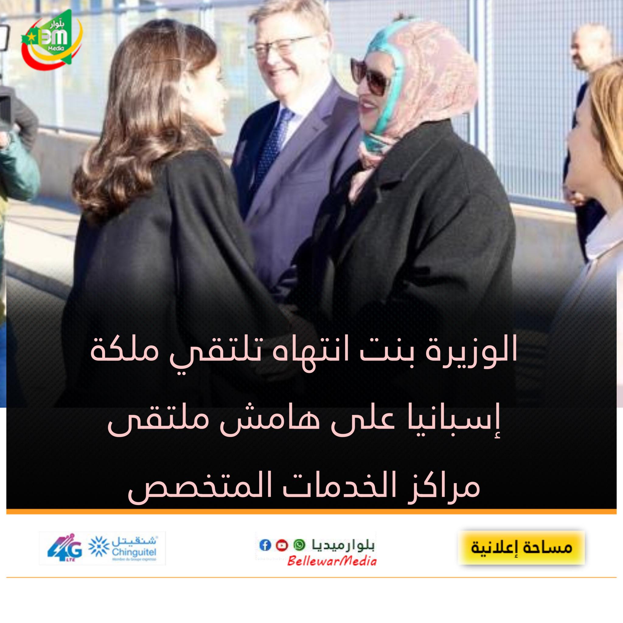 التقت معالي وزيرة العمل الاجتماعي والطفولة والأسرة، السيدة صفية بنت انتهاه، اليوم الثلاثاء على هامش فعاليات ملتقى مراكز الخدمات المتخصصة في مدينة إليكانتي الإسبانية، ملكة إسبانيا، السيدة ليتيسيا أورتيس.