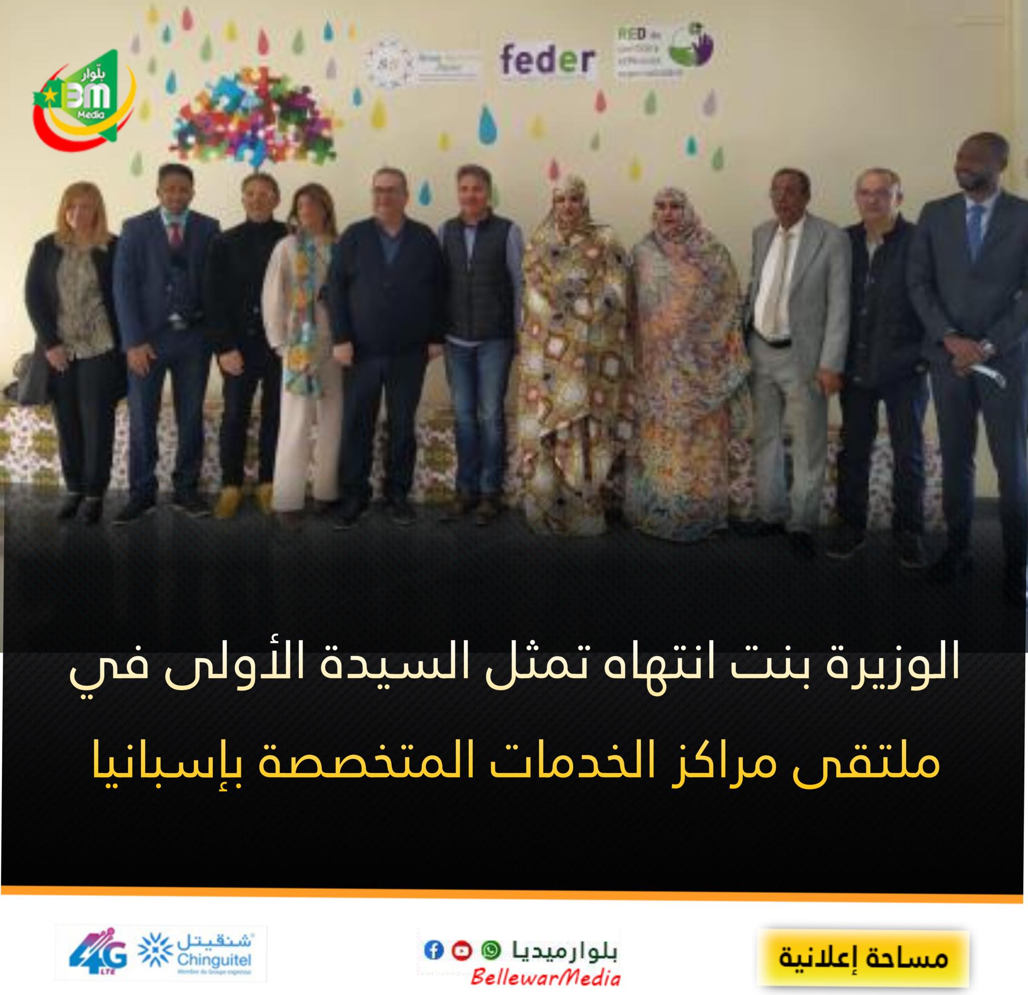 مثلت معالي وزيرة العمل الاجتماعي والطفولة والأسرة، السيدة صفية بنت انتهاه، السيدة الأولى الدكتورة مريم محمد فاضل الداه، صباح اليوم الاثنين، ضمن الوفود الرسمية المشاركة في فعاليات ملتقى مراكز الخدمات المتخصصة في مدينة اليكانتي الإسبانية.