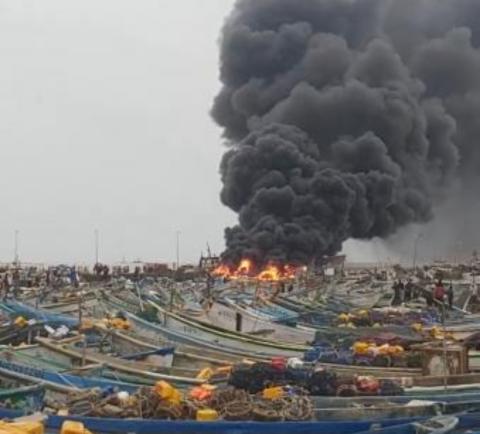 اندلع قبل قليل حريق فى ميناء خليج الراحة بمدينة نواذيبو