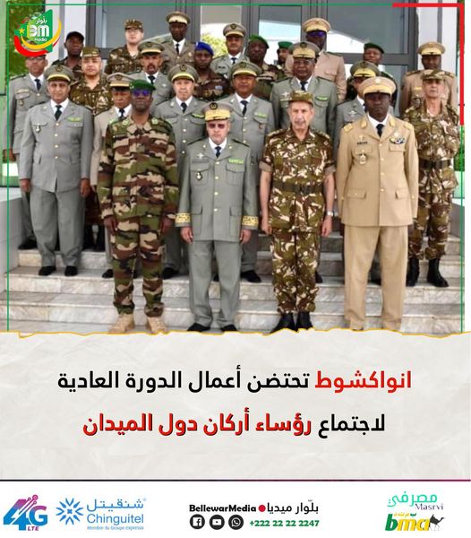 انطلقت اليوم الإثنين بانواكشوط أعمال الدورة العادية لاجتماع رؤساء أركان دول الميدان ،بإشراف من قائد الأركان العامة للجيوش الفريق المختار بله شعبان.