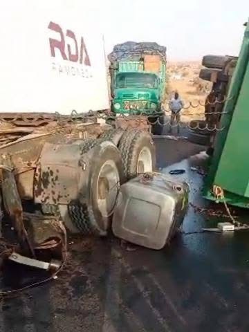 وأوضحت المصادر أن الحادث أدى إلى تصادم شاحنتين أخريين، دون تسجيل أي خسائر بشرية، فيما اقتصرت الأضرار على الجوانب المادية.