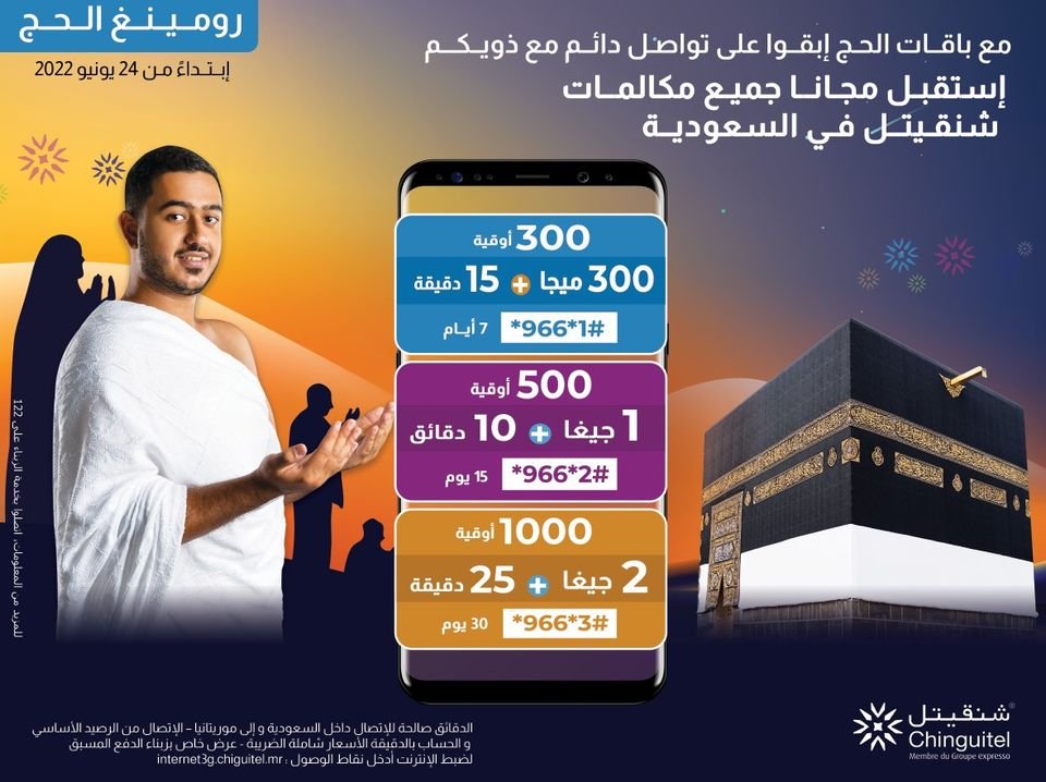 Les forfaits #Roaming_Hajj de #Chinguitel pour internet et appels, restez en contact avec vos proches avec un numéro #Mauritani .