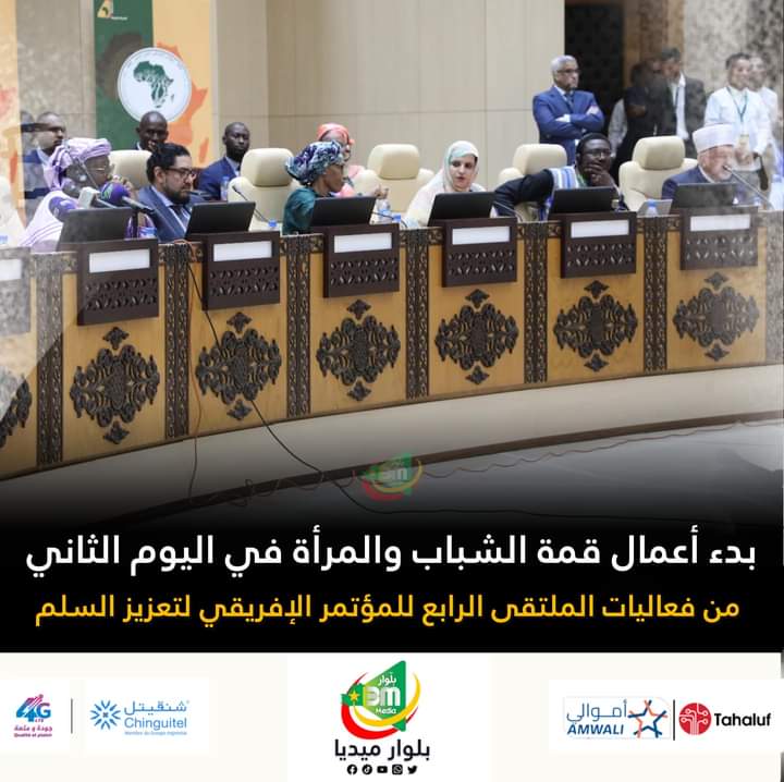 بدأت اليوم الأربعاء، أشغال قمة الشباب والمرأة في نسختها الثانية، ضمن أعمال الملتقى الرابع للمؤتمر الإفريقي لتعزيز السلم، تحت رعاية السيدة الأولى في الجمهورية الإسلامية الموريتانية، مريم محمد فاضل الداه.