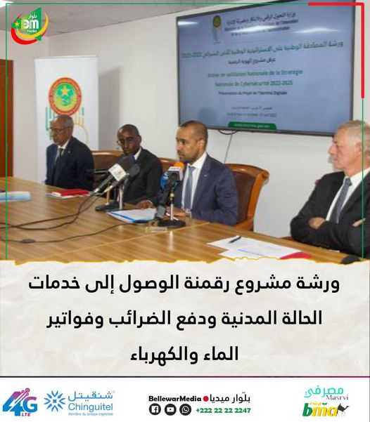 بدأت صباح اليوم الخميس بانواكشوط أعمال ورشة تقديم مشروع الهوية الرقمية للبلد، والمصادقة على الاستراتيجية الوطنية للأمن السيبراني للفترة ما بين 2022-2025.