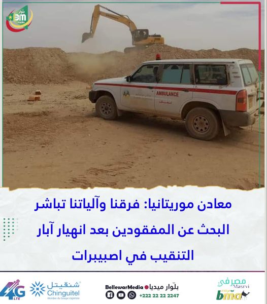 وإثر هذا الحادث المؤسف، فإن شركة معادن موريتانيا ، بادرت فور وقوع الحادث بإرسال آليات الحفر والإنقاذ التي ما تزال حتى الآن تحاول بصعوبة بالغة إنقاذ المنقبين مع مختلف الجهات الرسمية المختصة.