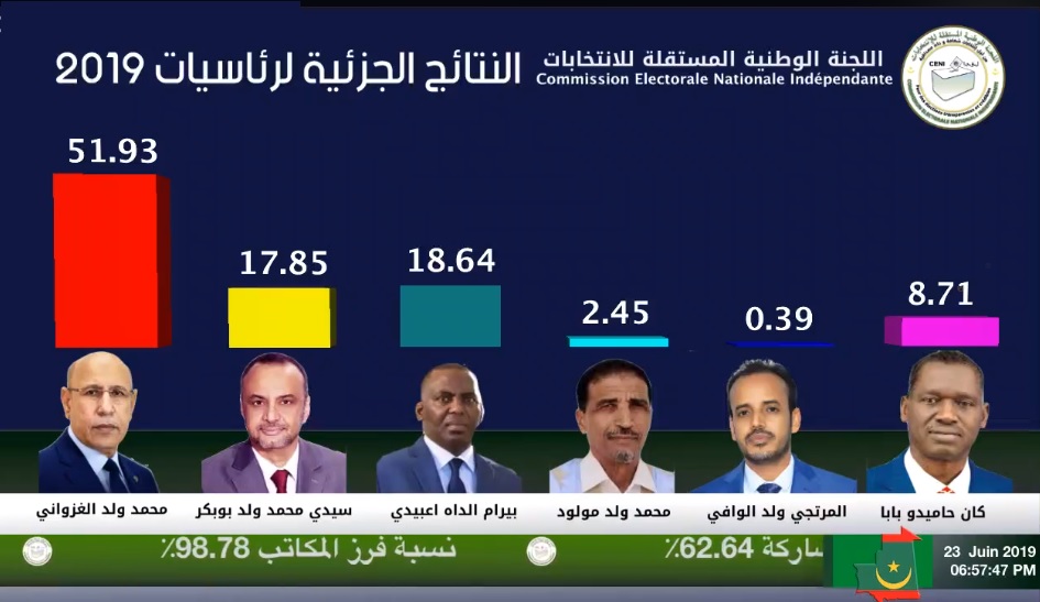 بعد فرز 99% من المكاتب، غزواني يقترب من 52% وبيرام في المركز الثاني