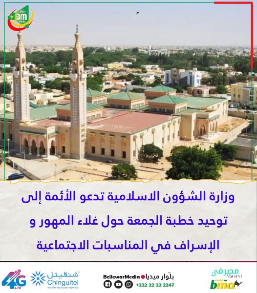 تدعو وزارة الشؤون الإسلامية والتعليم الأصلي السادة الأئمة والخطباء لتوحيد خطبة يو م الجمعة 13 محرم 1444هـ، الموافق: 12 اغسطس 2022 م، حول موضوع: “الحكم الشرعي من المغالاة في المهور والإسراف في المناسبات الإجتماعية” انطلاقا من قوله تعالي: (وَالَّذِينَ إِذَا أَنْفَقُوا لَمْ يُسْرِفُوا وَلَمْ يَقْتُرُوا وَكَانَ بَيْنَ ذَلِكَ قَوَامًا)