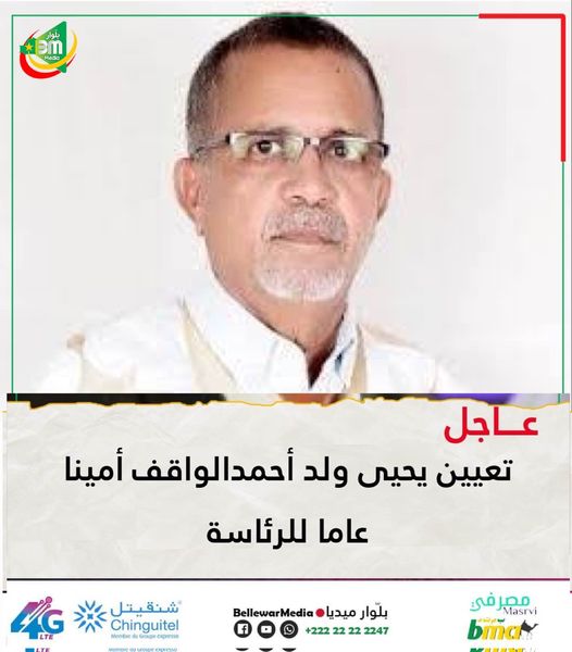 [ad_1] بموجب مرسوم رئاسي تم ظهر اليوم الخميس تعيين الوزير الأول السابق يحي ولد أحمد ولد الوقف وزيرا أمينا عاما للرئاسة. [ad_2] Source