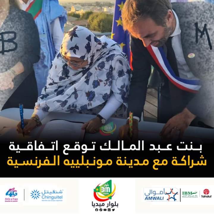 وقعت رئيسة جهة نواكشوط فطمة بنت عبد المالك اتفاقية شراكة وتعاون مع مدينة مونبيليه الفرنسية تتضمن العديد من مجالات التعاون من ضمنها مواجهة التغيرات المناخية والتكوين المهني والزراعة الحضرية مع التركيز بالخصوص على قطاع المياه من خلال رغبة هذه المدينة الانضمام لمجموعة الشركاء الذين يدعمون الجهة في مجال المياه.