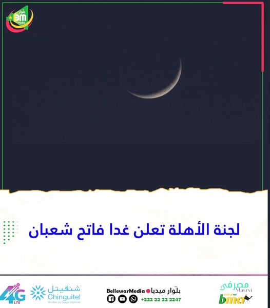 وبعد الاتصال بكافة الولايات توصلت اللجنة لما يثبت رؤية الهلال هذه الليلة رؤية مستفيضة وذلك في عدة ولايات من الوطن من بينها ولايات آدرار وداخلت نواذيبو و تيرس زمور وعليه فإن فاتح شهر شعبان هو يوم الجمعة الموافق 4 مارس 2022 م.