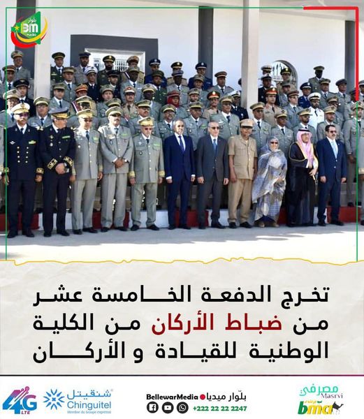 أشرف وزير الدفاع الوطني حنن ولد سيدي رفقة وزير الداخلية محمد أحمد ولد محمد الأمين مساء أمس الثلاثاء، بمقر الكلية الوطنية للقيادة والأركان على تخرج الدفعة الخامسة عشر من ضباط الأركان.