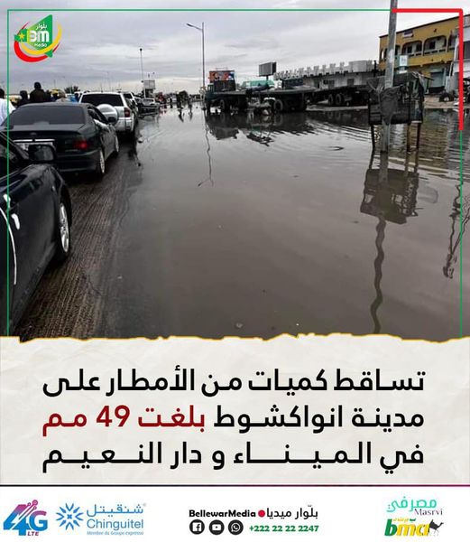 عرفت مدينة نواكشوط ليلة البارحة، تساقط كميات من الأمطار بلغت 49 مم في مقاطعتي الميناء، ودار النعيم.