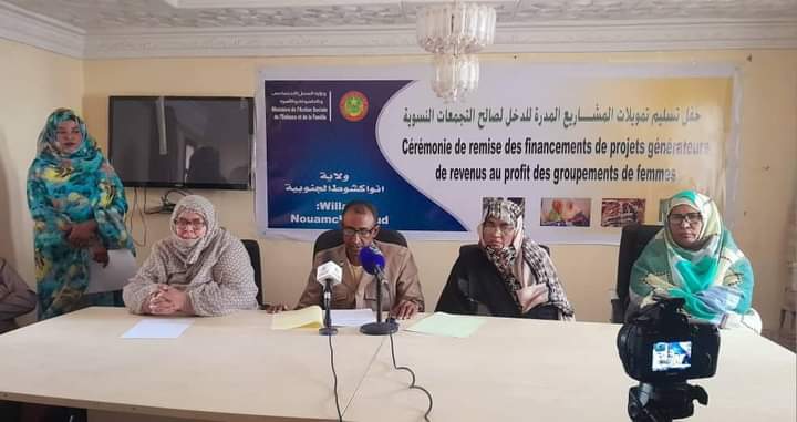 أشـرف مستشار والـي نواكشـوط الجنوبيـة المكلف بالشؤون الاقتصادية والتنمية المحلية، السيد محمد نوح ولد الشيخ إبراهيم، على تسليم تمويـل لمشاريـع مدرة للدخل لصالح 12 تجمعا نسويـا في الولايـة.