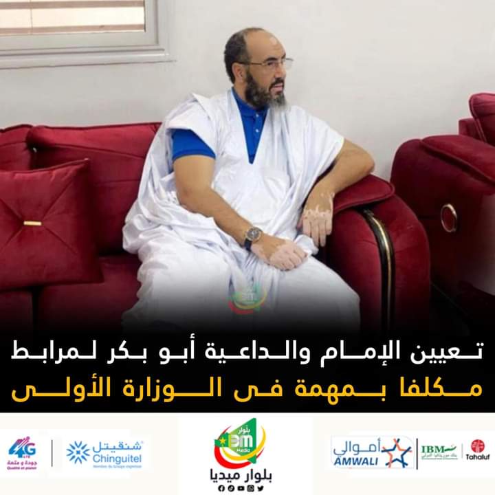 أعلن أمس الثلثاء، في مرسوم رئاسي، تعيين الإمام والداعية أبو بكر ولد لمرابط مكلفا بمهمة فى الوزارة الأولى.