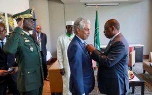 كرم اليوم الرئيس الدوري للاتحاد الإفريقي المنتهية ولايته الرئيس السنغالي ماكي صال رئيس مفوضية الاتحاد الأفريقي، موسى فكي محمد و مدير ديوان مفوضية الاتحاد الافريقي البروفيسور محمد الحسن ولد لبات بأعلى الاوسمة السنغالية : وسام كوماندور و ضابط سامي في نظام الاستحاق الوطني السنغالي اعترافا لهما بدورهما المتميز و خدمتهما الجليلة لتعزيز الاتحاد الافريقي و التقارب بين الشعوب على مدار السنة التي أمضاها رئيسا للاتحاد الافريقي ..