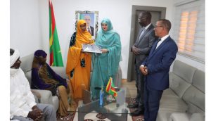 كرمت وزيرة العمل الاجتماعي والطفولة والأسرة، السيدة صفية بنت أنتهاه اليوم الإثنين بمكتبها، الفائزة الأولى وطنيا في مسابقة الباكالوريا شعبة الآداب الأصلية لسنة 2022 / 2023 التلميذة فاطمة صمب عليوات.