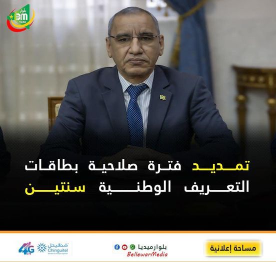 تمديد فترة صلاحية بطاقات التعريف الوطنية سنتين أعلنت الحكومة الموريتانية تمدي…