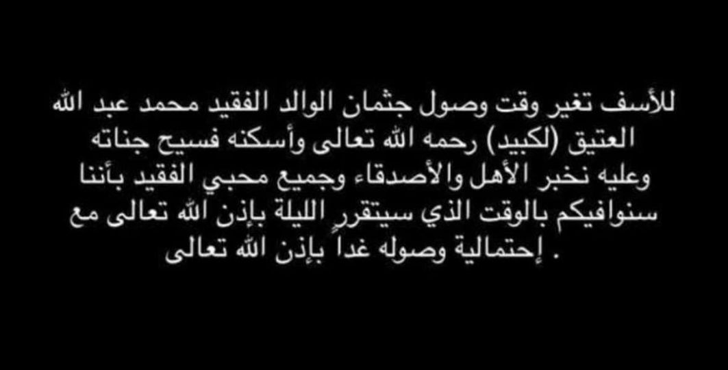تنبيه : للأسف تغير وقت وصول جثمان الوالد الفقيد محمد عبد الله العتيق (لكبيد) رح…