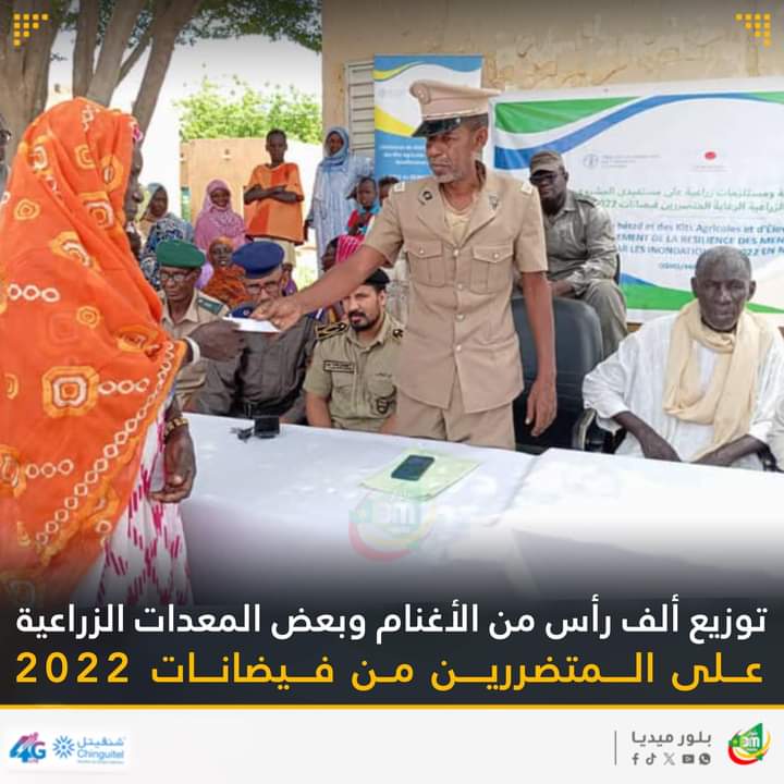 وزع مشروع تعزيز صمود الأسر الزراعية المتضررة من الفيضانات، المنفذ من طرف منظمة الأمم المتحدة للأغذية والزراعة م”فاو”، بالتعاون مع وزارة التنمية الحيوانية، أمس الثلاثاء، ألف رأس من الأغنام وبعض البذور والمعدات الزراعية على 3830 أسرة متضررة من فيضانات 2022 ببلديات أمباني وانيابينا وباجودين من توزيعات .