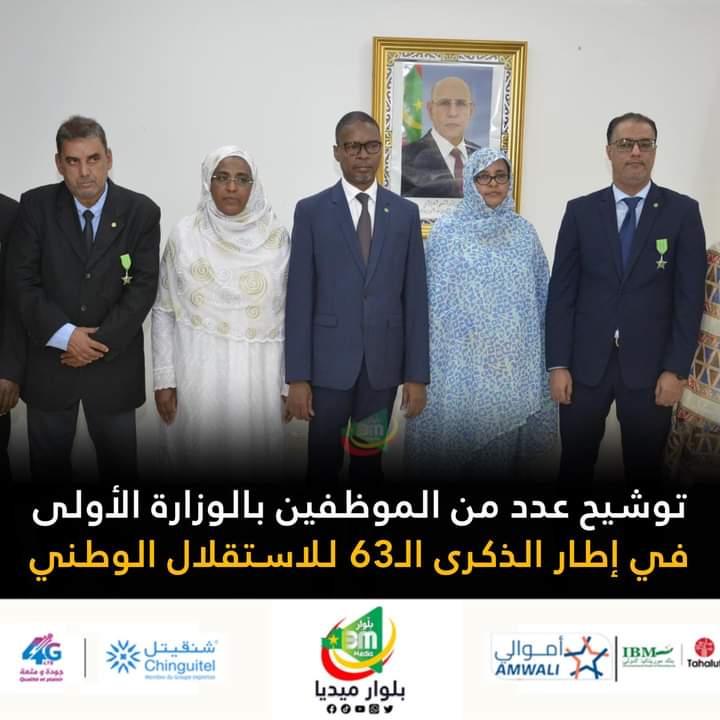 وشح الوزير الأول محمد بلال باسم رئيس الجمهورية محمد ولد الشيخ الغزواني، اليوم الاثنين بمباني الوزارة الأولى عددا من المسؤولين والعمال بالوزارة الأولى، وذلك في إطار تخليد الذكرى الثالثة والستين للاستقلال الوطني، و “تقديرا لجهودهم في خدمة الوطن وتحليهم بروح المسؤولية أثناء تأديتهم لواجبهم المهني.”