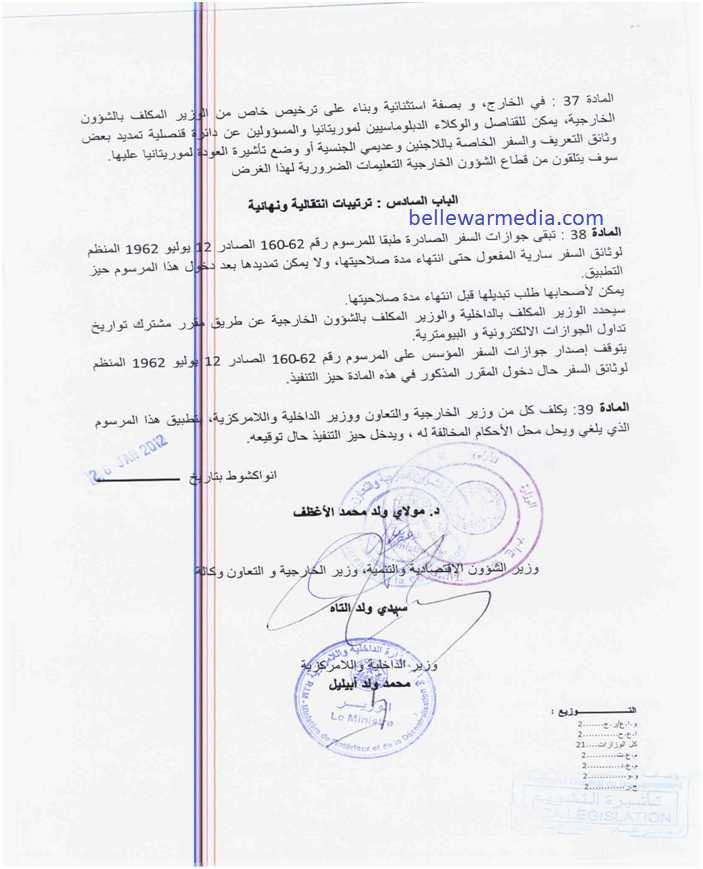 كما نشير إلى أن أول جواز بيومتري حصل عليه النائب السابق ضيف حلقة حوار الساعة على قناة الموريتانية بتاريخ:12 فبراير 2019م، كان جوازا دبلوماسيا صدر بتاريخ:21/06/2012م و كان ثاني جواز بيومتري صدر لصالحه هو جواز سفر عادي صادر بتاريخ:10/04/2014م.
