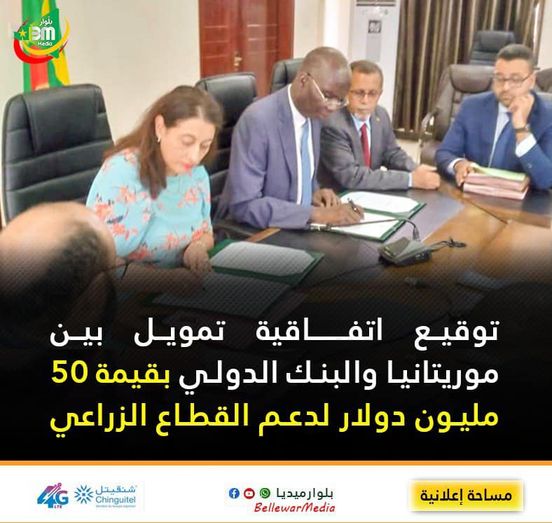 توقيع اتفاقية تمويل بين موريتانيا والبنك الدولي بقيمة 50 مليون دولار لدعم التنمية والابتكار في قطاع الزراعة