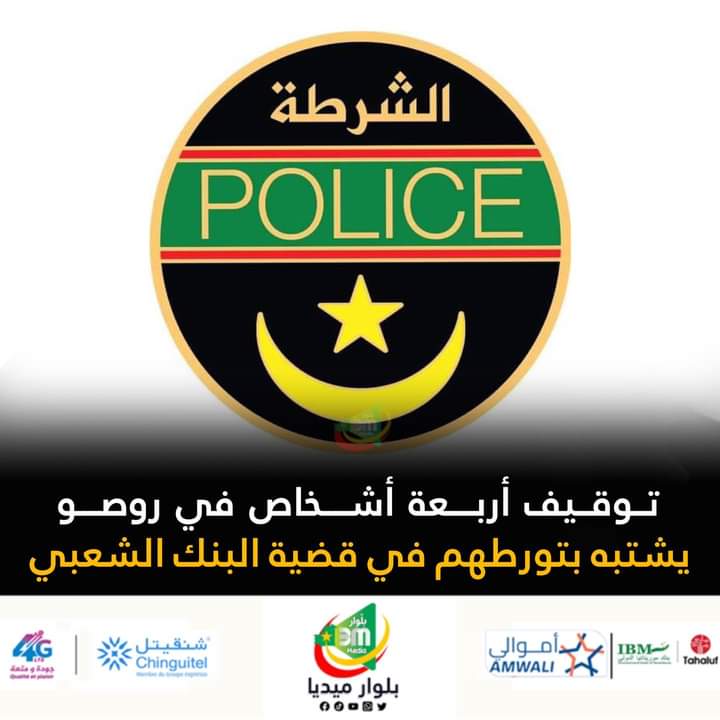 قامت الشرطة الوطنية في مدينة روصو جنوبي البلاد، بتوقيف أربعة أشخاص يشتبه في صلتهم بمنفذي عملية السطو على البنك الشعبي، لتحيلهم إلى الأمن في العاصمة نواكشوط.