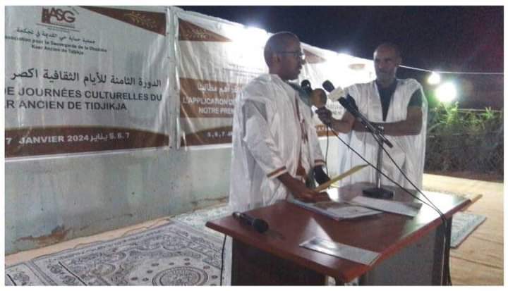 وشكر والي تكاتت السيد الطيب ولد محمد محمود في كلمته بالمناسبة القائمين على هذه الجمعية ،مبرزا ما توليه الحكومة وبتوجيهات سامية من رئيس الجمهورية السيد محمد ولد الشيخ الغزواني من عناية لتنمية الموروث الثقافي بإعتباره هوية الأمة التي تثبت وجودها وتبرز خصوصياتها وتحقق طموحاتها .