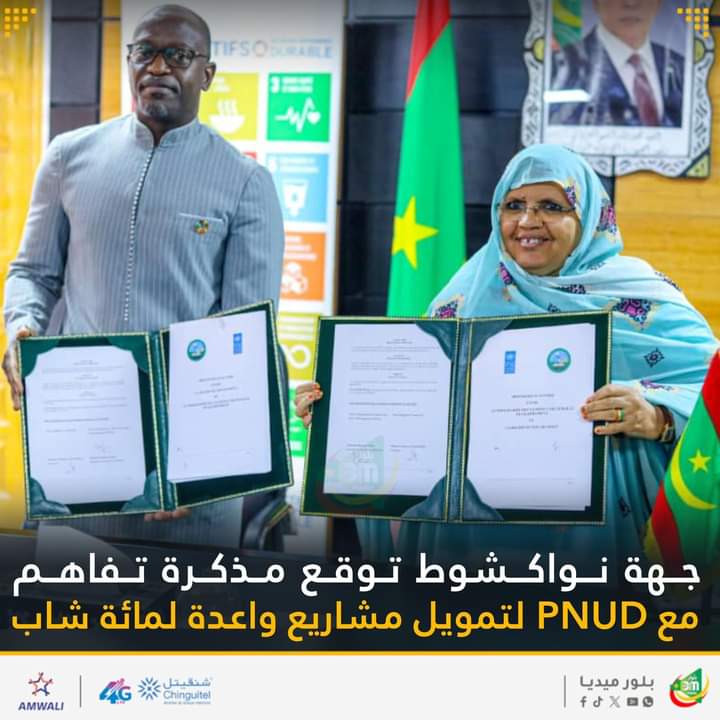 وقعت جهة نواكشوط، اليوم الأربعاء مذكرة تفاهم مع برنامج الأمم المتحدة للتنمية (PNUD) للحصول على تمويل لدمج 100شاب من المستفيدين من مشروع الجهة للتكوين في المهن الواعدة.