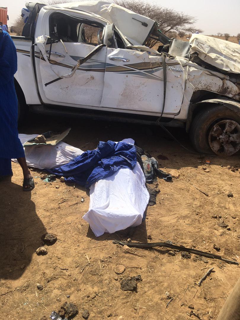 وتظهر الصور سيارة من نوع تويوتا هيلكس، وقد تعرضت لأضرار كبيرة، ولم يكشف المصدر عن سبب الحادث.