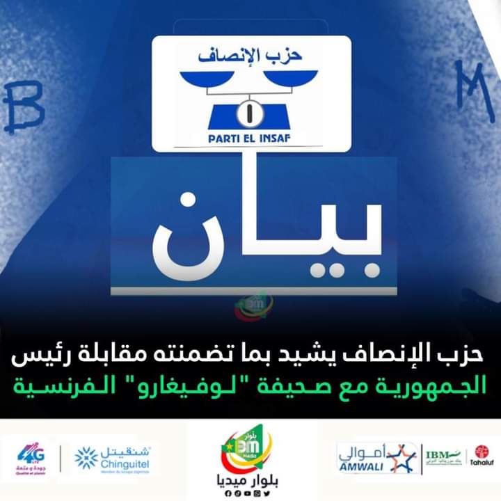 أشاد حزب الإنصاف بما تضمنته المقابلة التي أجراها رئيس الجمهورية محمد ولد الشيخ الغزواني مع صحيفة “لوفيغارو” الفرنسية التي وصفها بالهامة، “من ردود واضحة وعميقة وما أبانت عنه من رؤية ثاقبة لسيادته حول مجمل الحلول الناجعة لمختلف مشاكل المنطقة والعالم.” على حد قوله.