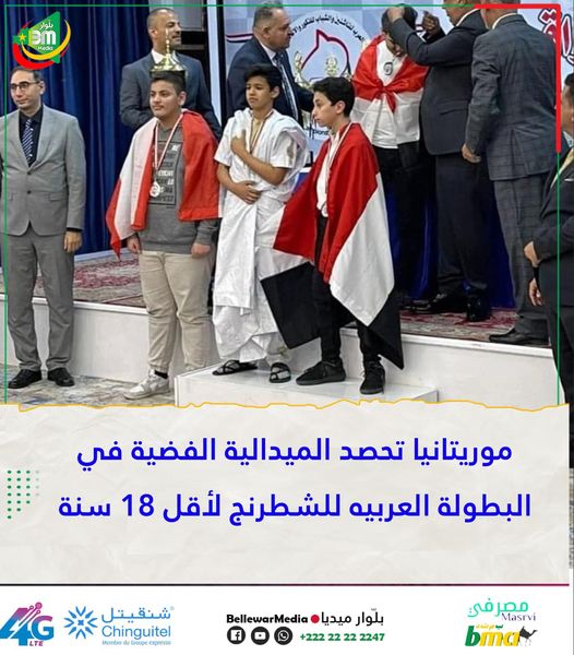 حصدت موريتانيا اليوم الخميس، الميدالية الفضية في البطولة العربية للشطرنج، لأقل من 18 سنة، في العاصمة العراقية بغداد عن طريق البطل الشبل عبدالرحيم محمد .