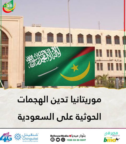 دانت موريتانيا في بيان صادر عن وزارة الشؤون الخارجية اليوم الأحد ، الهجمات التي تعرضت لها المملكة العربية السعودية مجدداً .