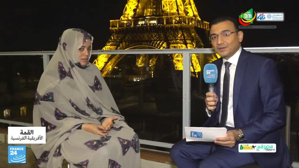 زينب عبد الجليل رئيسة حاضنة ريم- تك و أحدي الشباب المشاركين في القمة الإفريقية الفرنسة من موريتانيا