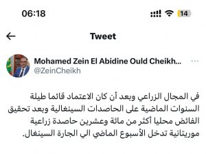 جاء ذلك في تغريدة لرئيس اتحاد ارباب العمل الموريتانيين، السيد محمد زين العابدين ولد الشيخ أحمد، على تويتر.