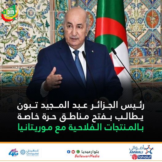 رئيس الجزائر عبد المجيد تبون؛ يطالب بفتح مناطق حرة خاصة بالمنتجات الفلاحية مع موريتانيا: