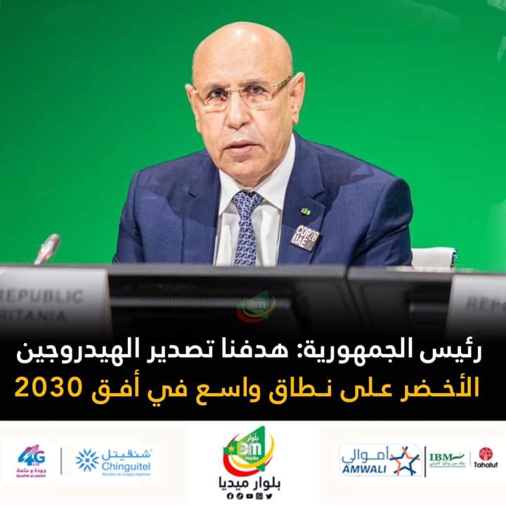 قال الرئيس الموريتاني محمد ولد الشيخ الغزواني، إن هدف موريتانيا في أفق 2030 هو تطوير صناعة الهيدروجين الأخضر على نطاق واسع من أجل التصدير والاستخدام محليا.
