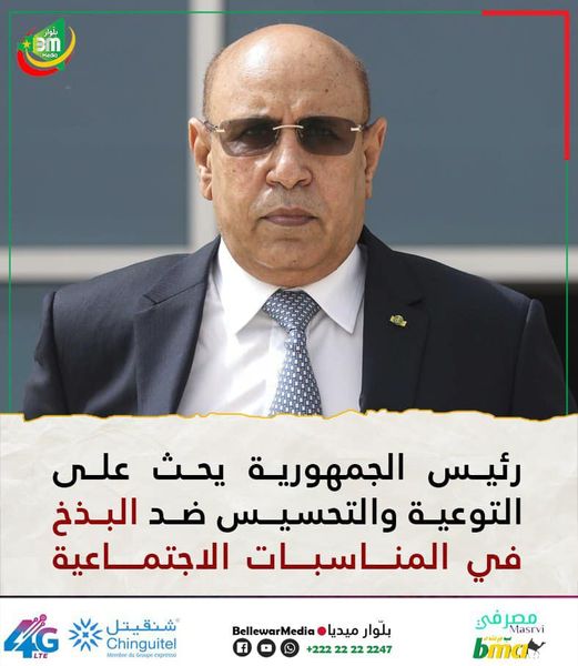 وجه رئيس الجمهورية محمد ولد الشيخ الغزواني تعليماته إلى الحكومة بالتوعية الشاملة على جميع المستويات من أجل الكف عن البذخ في المناسبات الاجتماعية.