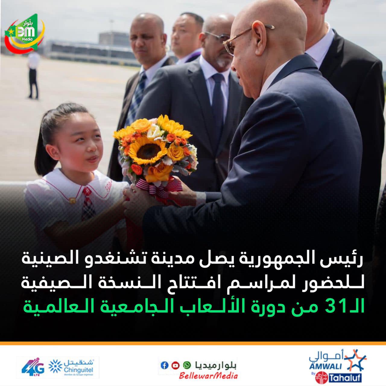 وصل رئيس الجمهورية محمد ولد الشيخ الغزواني اليوم الجمعة، إلى مدينة تشنغدو، غربي الصين، للحضور