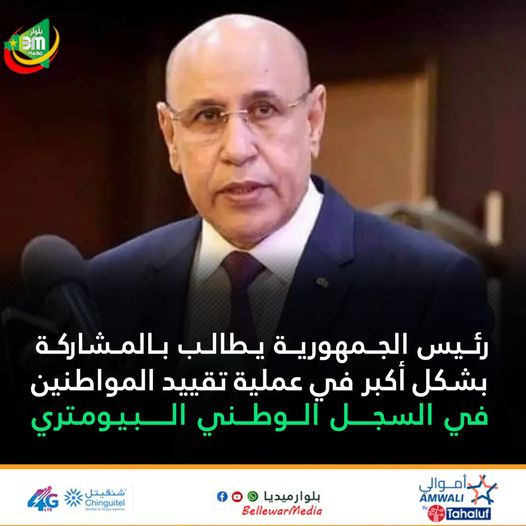 طالب رئيس الجمهورية محمد ولد الشيخ الغزواني “بالمشاركة بشكل أكبر في حملة التوعية لضمان نجاح عملية تقييد المواطنين في السجل الوطني البيومتري، بحيث يتم تسجيل جميع المواطنين في نهاية العام.”