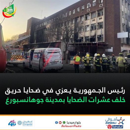 قدم رئيس الجمهورية محمد الشيخ الغزواني تعازيه إلى رئيس الجنوب إفريقي سيريل رامافوزا، في ضحايا الحريق الذي خلف عشرات الضحايا بمدينة