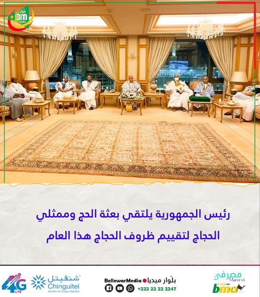 وحسب إيجاز من صفحة الرئاسة الموريتانية على الفيسبوك، فإن هدف اللقاء هو تقييم ظروف الحجاج هذا العام، والجهود التي بذلتها البعثة لوضع الحجاج في ظروف تسمح لهم بأداء مناسك الحج.