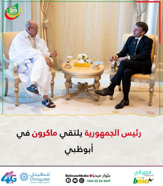 رئيس الجمهورية يلتقي بماكرون في أبوظبي . التقى رئيس الجمهورية، محمد ولد الشيخ ا…