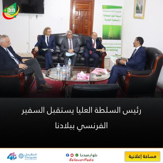 استقبل رئيس السلطة العليا للصحافة و السمعيات البصرية السيد الحسين ولد مدو بمكتبه اليوم الجمعة 11 نوفمبر 2022 سعادة السيد الكسندر جارسيا سفير الجمهورية الفرنسية ببلادنا.