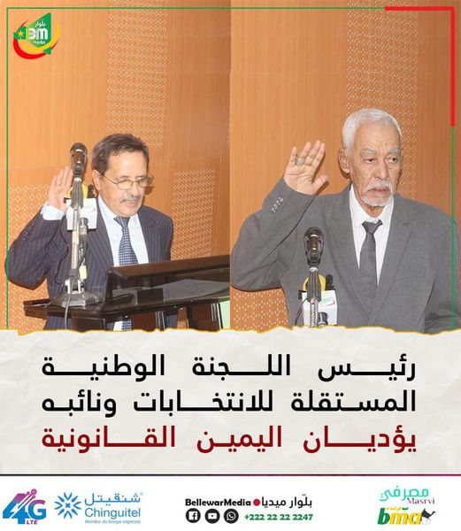 ودعا رئيس المجلس الدستوري رئيس اللجنة ونائبه لأداء اليمين القانونية التالية “أقسم بالله العلي العظيم، أن أؤدي وظائفي بإخلاص وعلى الوجه الأكمل وأن ازاولها بحياد تام مع مراعاة قوانين الجمهورية الاسلامية الموريتانية”.
