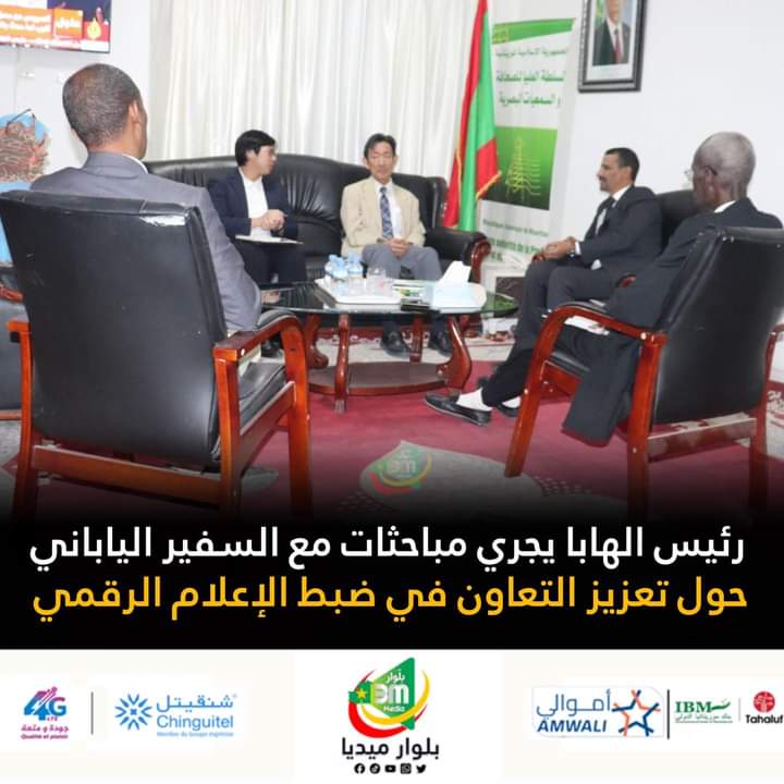 أجرى رئيس السلطة العليا للصحافة والسمعيات البصرية “الهابا”، اليوم الأربعاء بمقر السلطة، مباحثات مع السفير الياباني المعتمد بنواكشوط أوتشيدا تاتسوكوني.