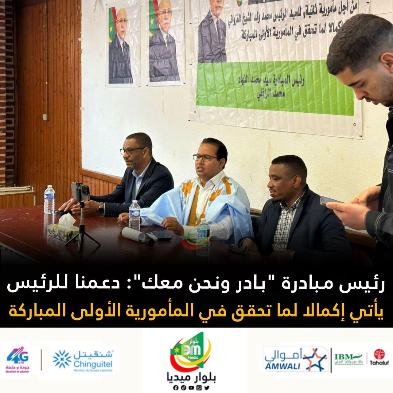 قال رئيس مبادرة “بارد ونحن معك” سيدي محمد ولد النهاه ولد محمد الراظي إن دعم المبادرة للرئيس محمد ولد الشيخ الغزواني في ترشحه لمأمورية ثانية، يأتي “إكمالا لما تحقق في المأمورية الأولى المباركة.”