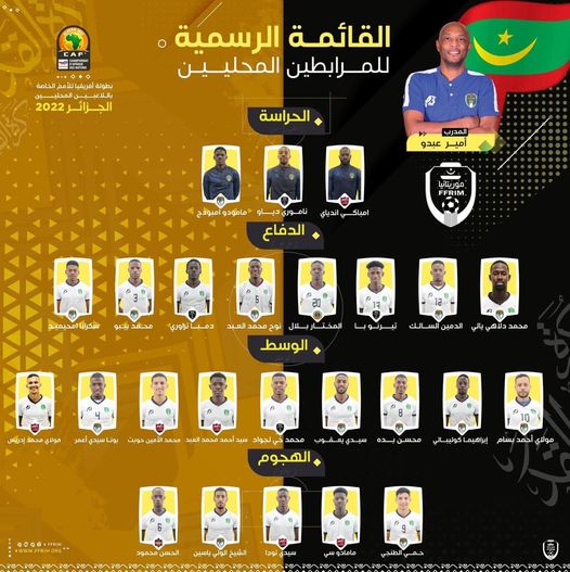 رسمياً: هذه هي القائمة النهائية للمنتخب الوطني 🇲🇷 للمحليين من 25 لاعباً، الذين اختارهم الناخب الوطني أمير عبدو، لخوض نهائيات بطولة أفريقيا للأمم “الجزائر 2022″، الخاصة باللاعبين المحليين.