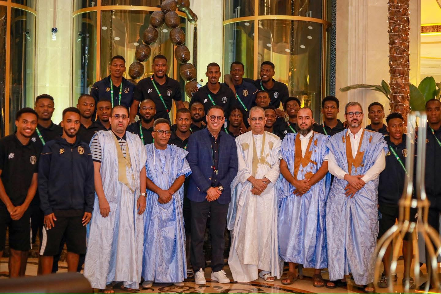 وكان في استقبال السفير رئيس الاتحادية الموريتانية لكرة القدم، أحمد ولد يحي، حيث التقى باللاعبين وحثّهم على بذل أقصى الجهود لتحقيق نتيجة إيجابية، مؤكداً دعم الحكومة والشعب الموريتانيين للمنتخب في هذا الاستحقاق الرياضي.