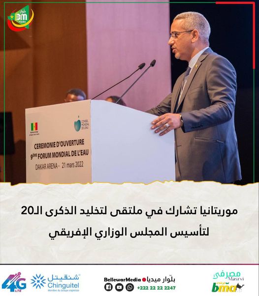 شاركت موريتانيا اليوم الثلاثاء، بدكار، في ملتقى لتخليد الذكرى الـ20 لتأسيس المجلس الوزاري الإفريقي المعني بالمياه AMCOW.